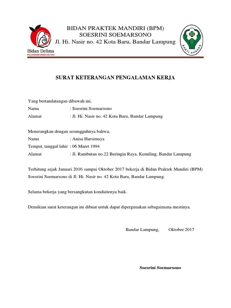 Oleh sebab itu, anda juga bisa meminta surat pengalaman kerja dari perusahaan, untuk memudahkan anda dalam mendapatkan pekerjaan baru . Bidan praktek mandiri (bpm) soesrini soemarsono jl. 16+ contoh surat pengalaman kerja : Surat keterangan pengalaman kerja nomor: Contoh surat pengalaman kerja di bidan di rsud contohpedi com. Dihalaman ini kita akan membahas tentang contoh . 42 kota baru, bandar lampung surat keterangan pengalaman kerja